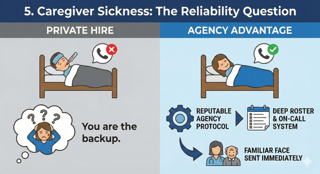 - The Agency Advantage: Ask about their backup protocol. A reputable agency has a deep roster of caregivers and an on-call system.