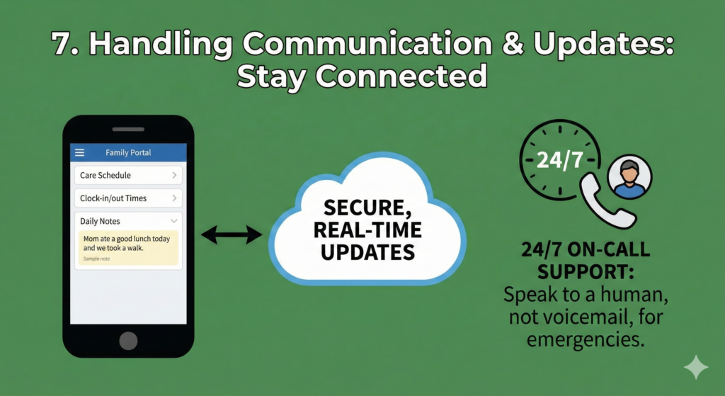 - Family Portals: Does the agency use technology? Many modern agencies have secure apps where family members can see the care schedule, see clock-in/clock-out times, and read daily notes from the caregiver (e.g., “Mom ate a good lunch today and we took a walk”).