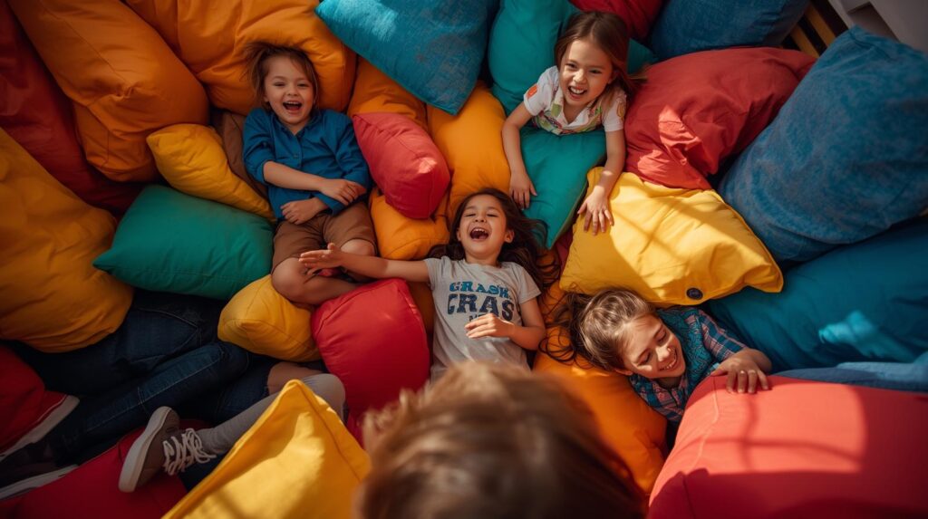 • For the Hyposensitive Child (Seeking Input): If your child needs to expel energy to regulate, create a “crash pad.” Use old mattresses or large bean bag chairs where they can safely jump and crash. Consider a doorway swing or a mini-trampoline for vestibular input.